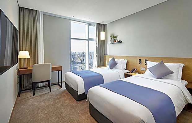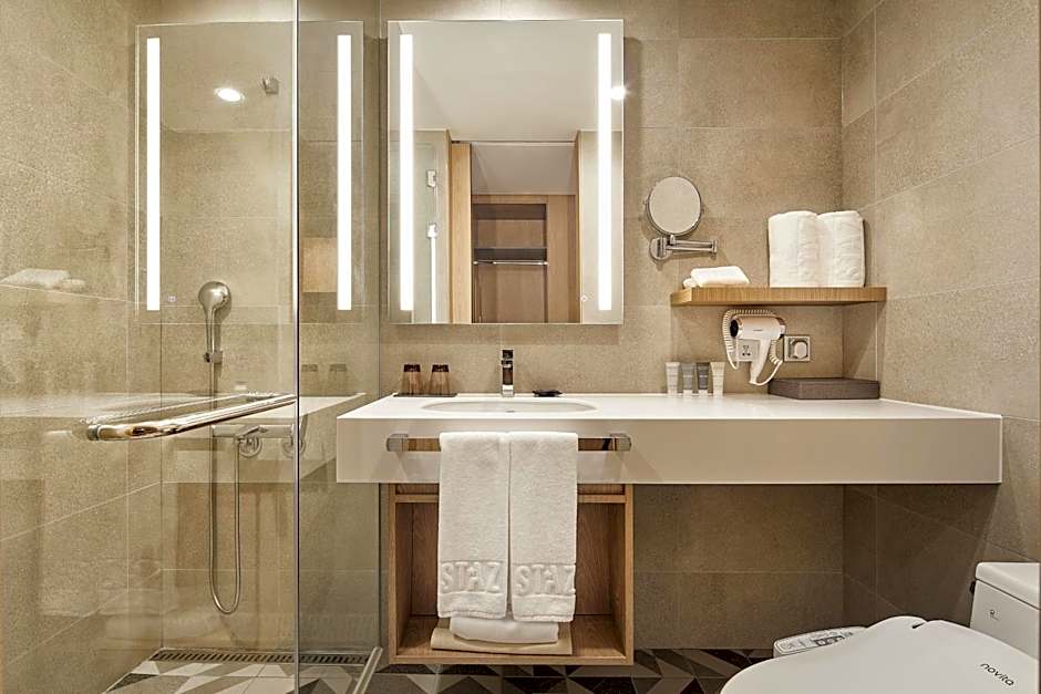Offering bathrobes, this twin room includes a private bathroom with a bath, a bidet and a hairdryer. This twin room features air conditioning, an electric kettle, a flat-screen TV and city views. The unit offers 2 beds.